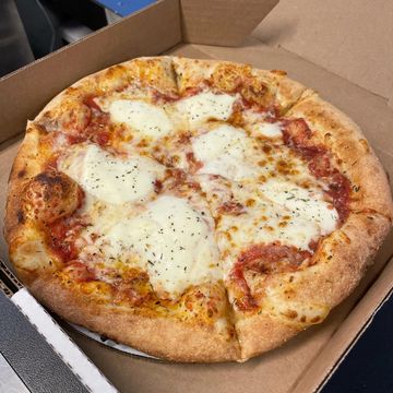 Fresh mozzarella cheese on top of our shredded mozzarella, all melted on top of our San Marzano tomato sauce.