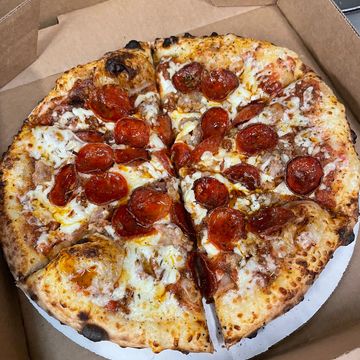 Char and cup pepperoni with a bold twist—Mike’s Hot Honey—atop our cheese blend and San Marzano tomato base.